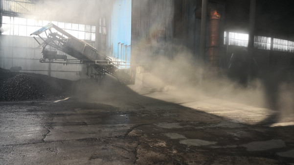 三、矿区储煤场出煤口无收尘设施,雾炮、喷淋设施未开启,进入检查时才开启;