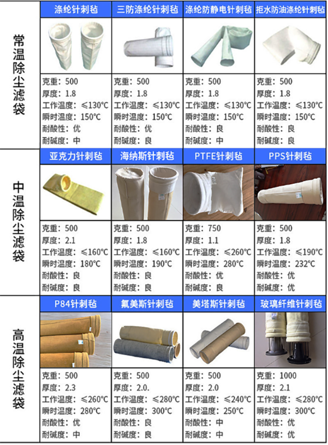 各种常温、中温、高温除尘滤袋的材质及性能对比